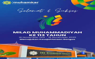 Selamat Milad Muhammadiyah ke-113! Bersyukur dan turut merayakan perjalanan panjang Muhammadiyah dalam menebar pencerahan bagi umat dan bangsa. Semangat keikhlasan, dakwah, dan pengabdian yang diwariskan sejak awal berdiri yang terus hidup hingga kini