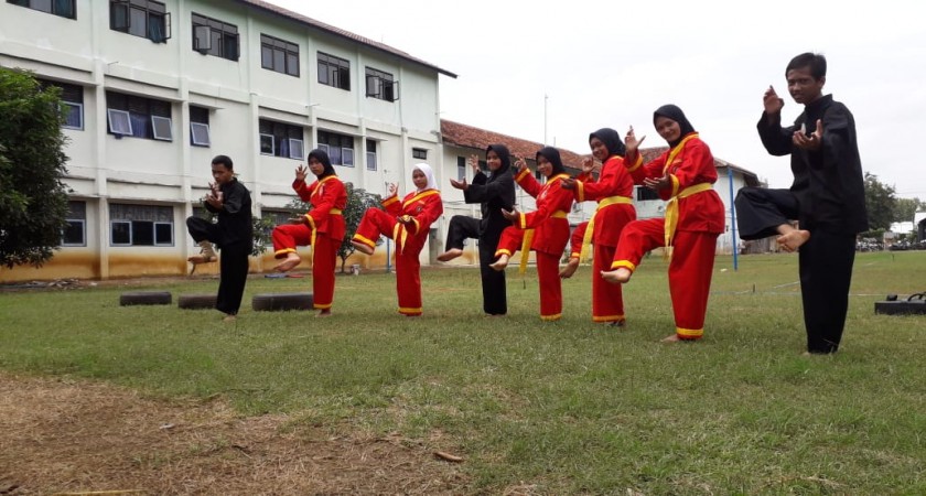 Latihan Penca Silat di Lapangan SMK MUhammadiyah Karanganyar